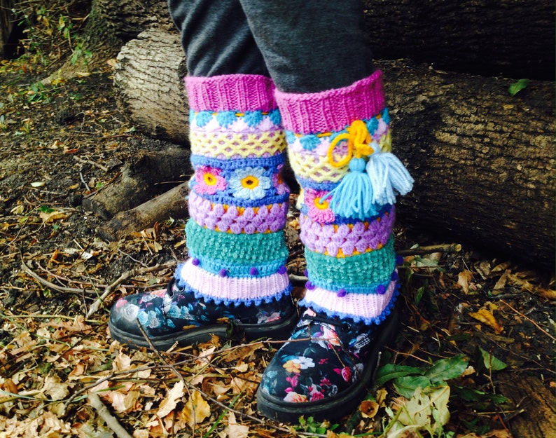 The crochet pattern of these leg warmers is available at my Etsy shop here: Written Crochet Pattern Colorful Leg Warmers for Girls :)