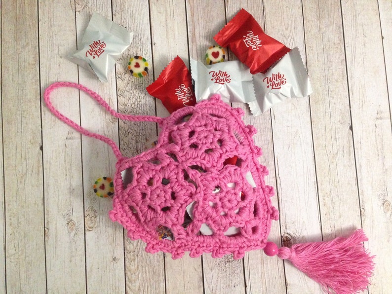 If you would like to try this bag, look for this gift bag in the shape of heart crochet pattern in my Etsy shop. Good Luck!
