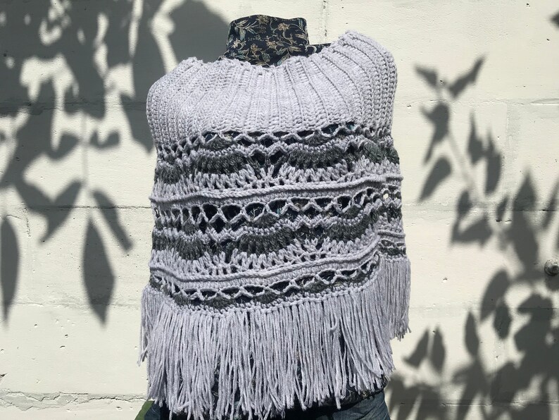 This poncho is made from 300-450g of Aran/Medium Worsted Yarn, more details on yarn recommendations, hook size and available adult sizes in my Etsy shop here - Nadia Poncho.
